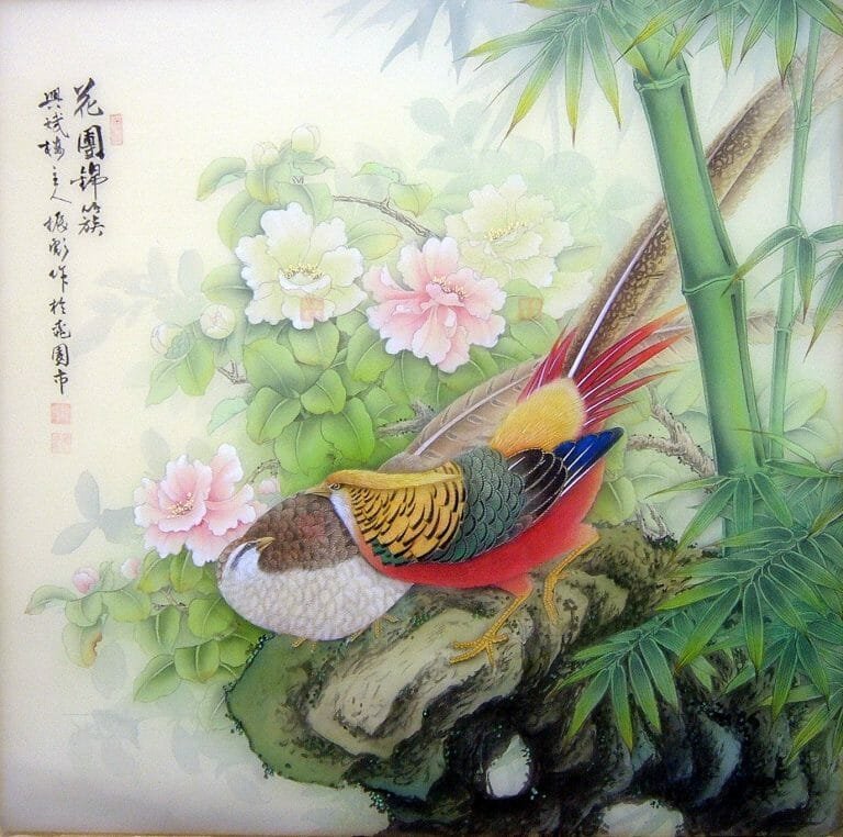 花前月下 45X65cm 工筆花鳥畫作-林振彪書畫-No102