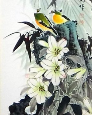 百年好合 35X135cm 寫意花鳥畫作-林振彪書畫-No192