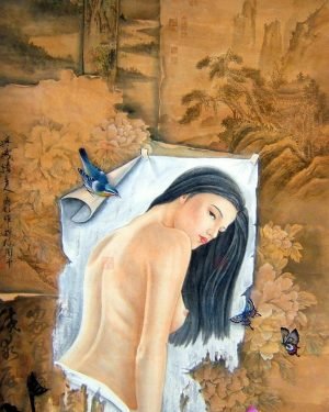 爭艷 65X65cm 寫意花鳥畫作-林振彪書畫-No128