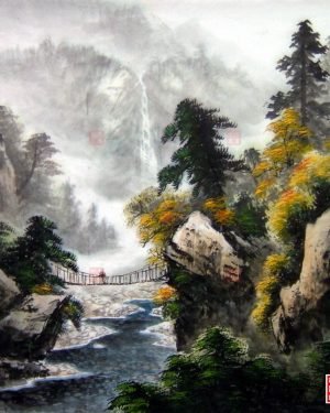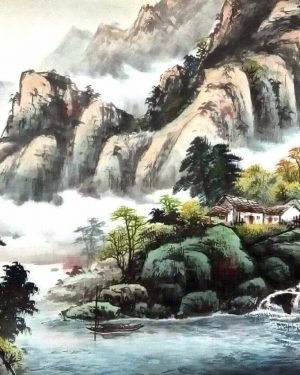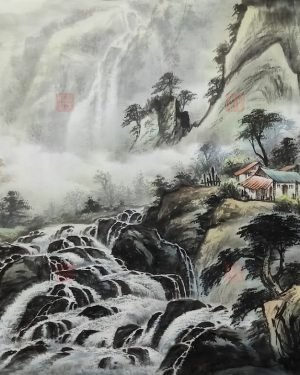 溪山春曉 68X68cm 寫意山水畫作-林振彪書畫-No269