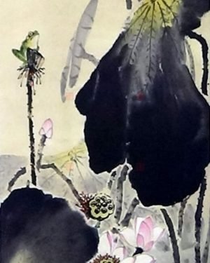 荷影相隨 35X135cm 寫意花鳥畫作-林振彪書畫-No129