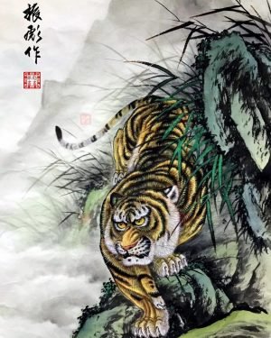 虎嘯 45X120cm 寫意花鳥畫作-林振彪書畫-No98