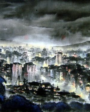 夜 68X68cm 寫意山水畫作-林振彪書畫-No249