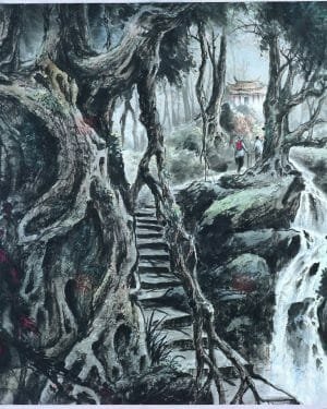 古寺探幽 68X68cm 寫意山水畫作-林振彪書畫-No283